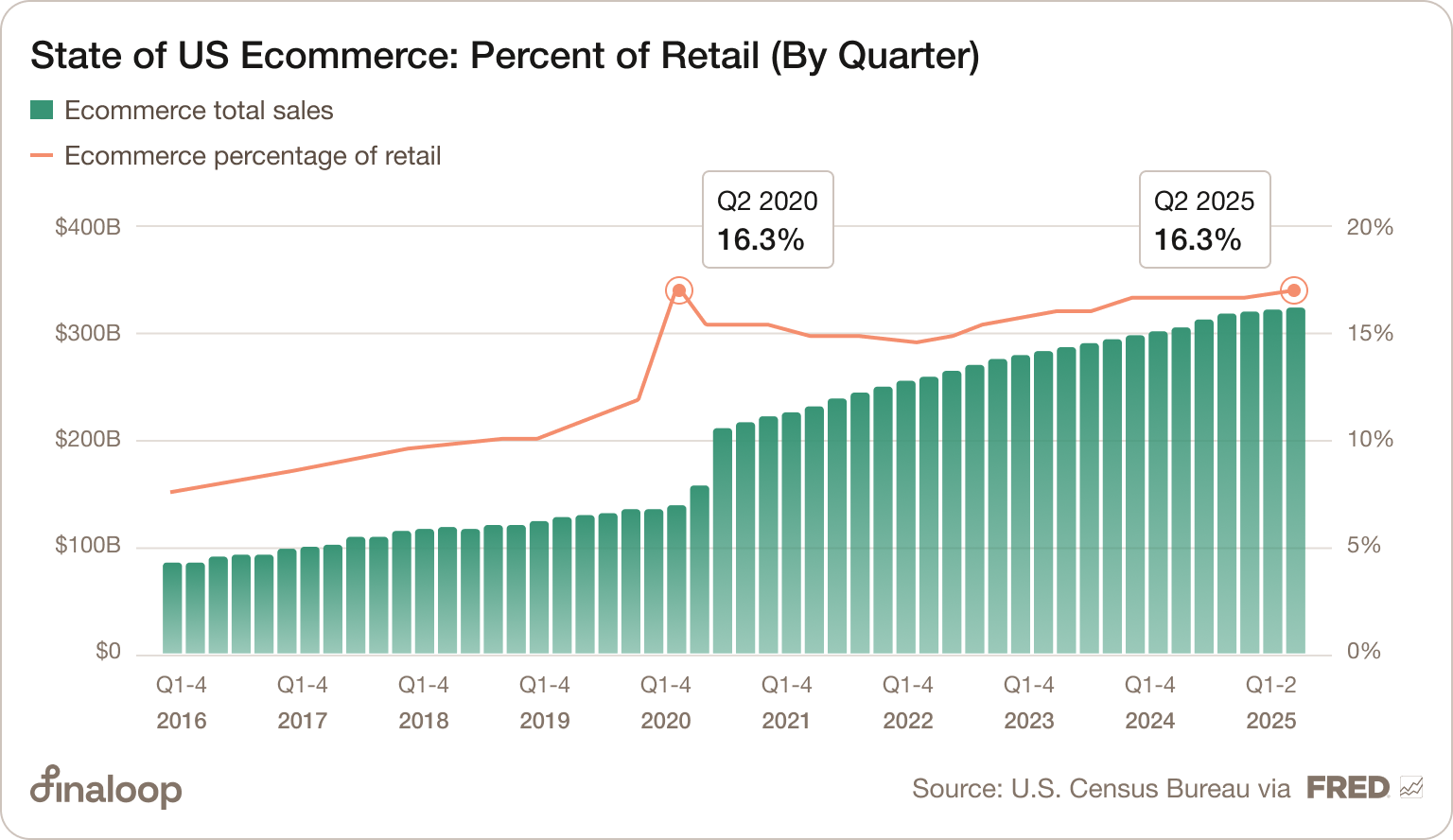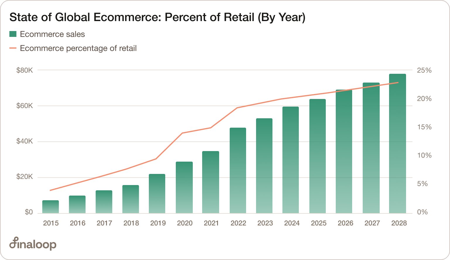 In the wake of COVID’s clawback, ecommerce sales in the US and worldwide have rebounded — this is especially true of ecommerce sales as a percentage of total sales.