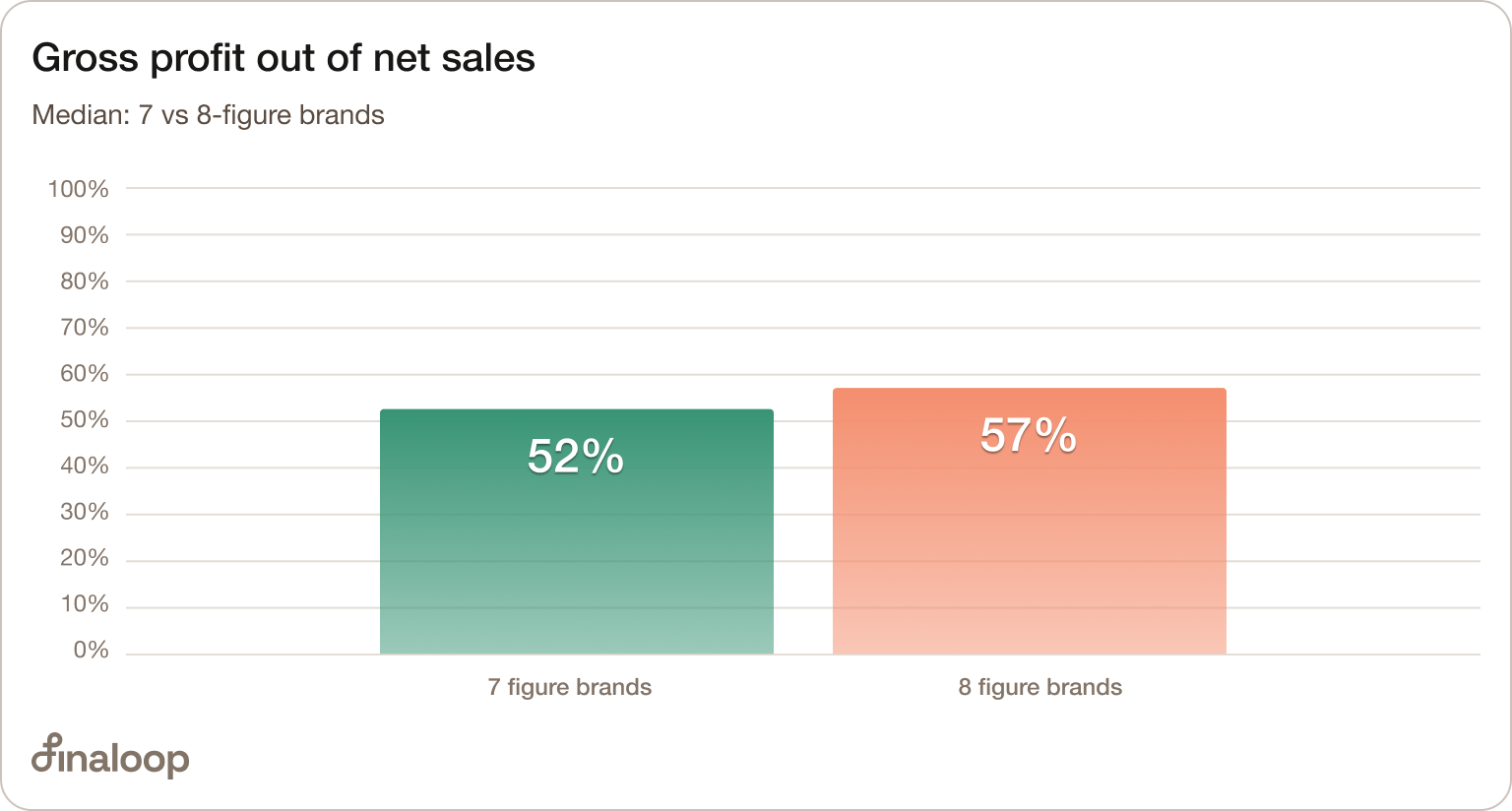 Last year, median gross margin was significantly higher for 8-figure brands (56%) versus 7-figure brands (52%).