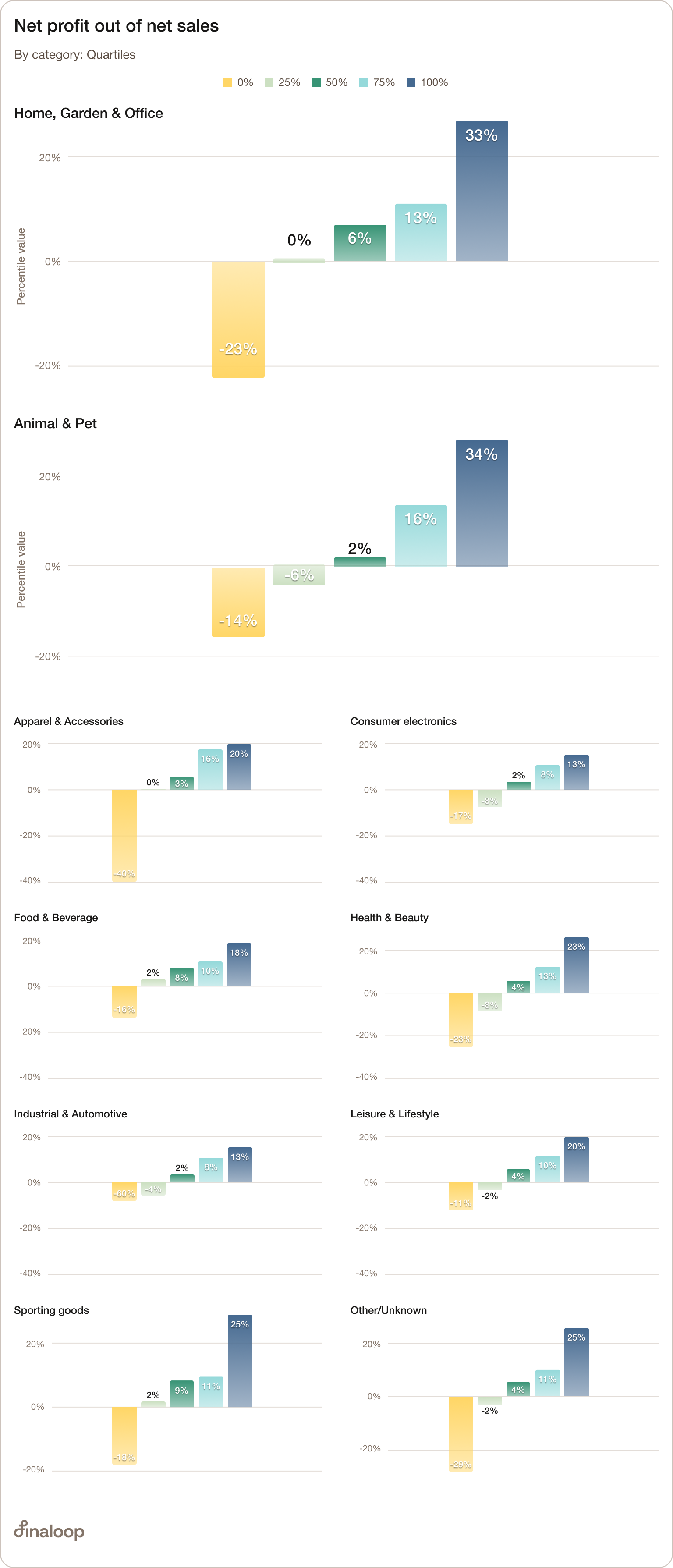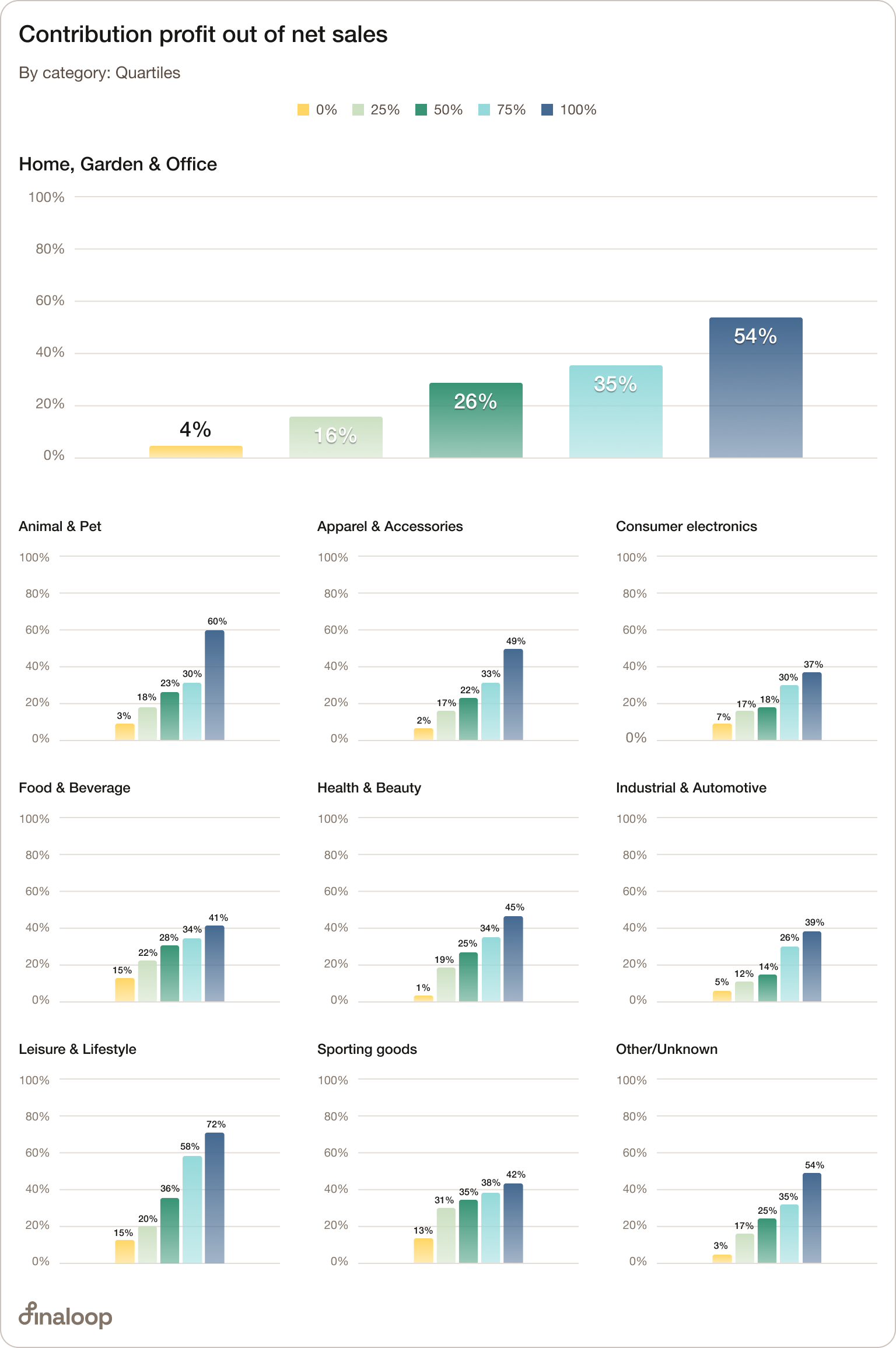 On the other hand, sporting goods range from 66% (top quartile), down to 28% of the lowest performing quartile.