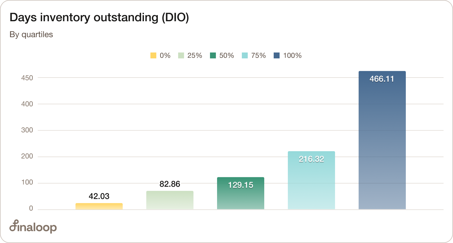 Our median data from 2024 shows days inventory outstanding of about 129 days, with top-performing brands with DIO of about 42, and the worst-performing brands holding inventory for 466 days.
